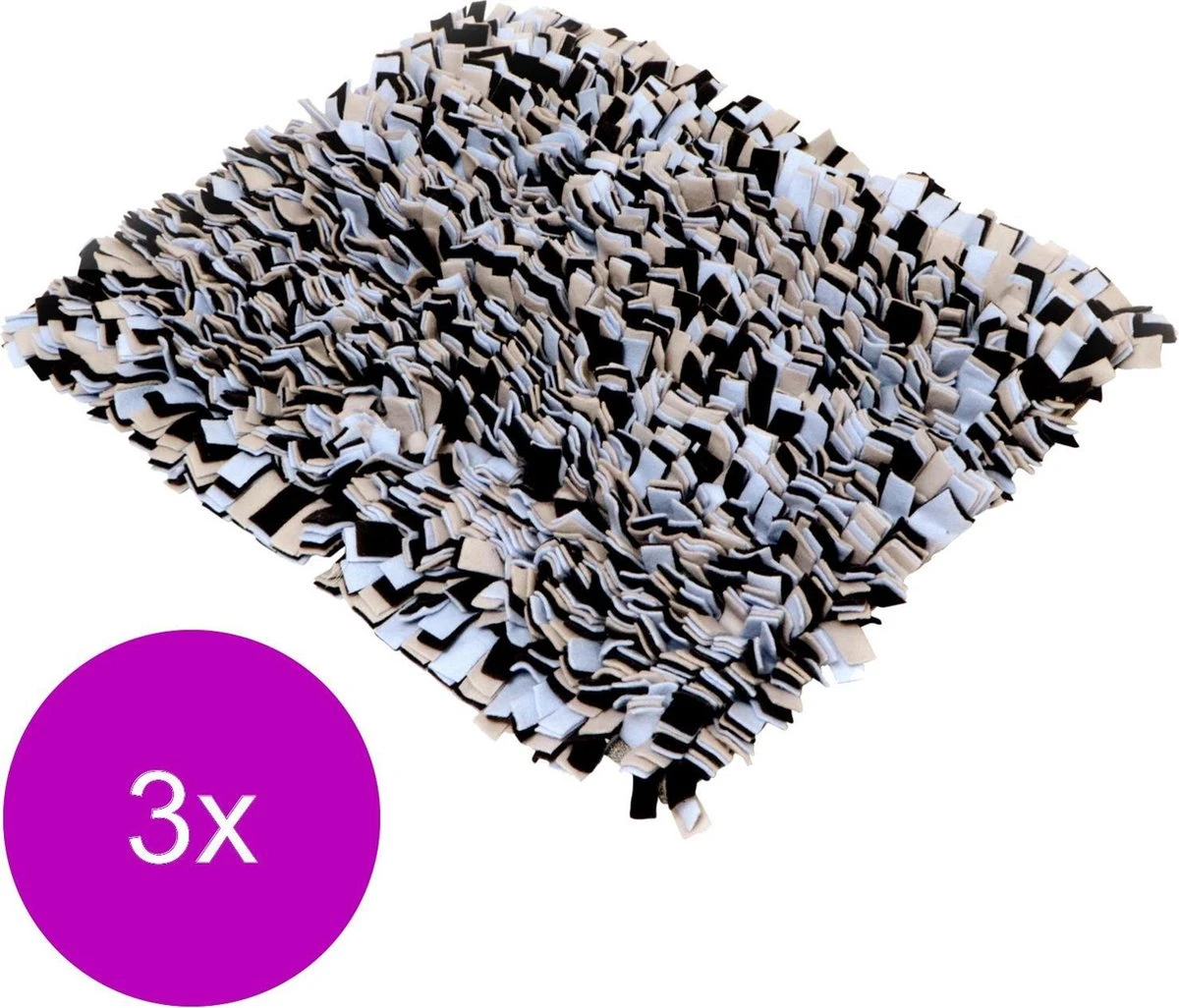 Deze snuffelmat voorkomt verveling bij hond en moedigt je huisdier aan om te experimenteren en te leren. Verstop brokjes of de favoriete snack van je dier tussen de fleecerepen. Vervolgens moet je viervoeter moeite doen om het lekkers te vinden, verstopt in de mat. Je kan de snuffelmat gebruiken als traktatie, maar ook de normale maaltijd kan erin verstopt worden. Ruim de snuffelmat op wanneer het spel is afgelopen, zo blijft hij spannend voor je dier.