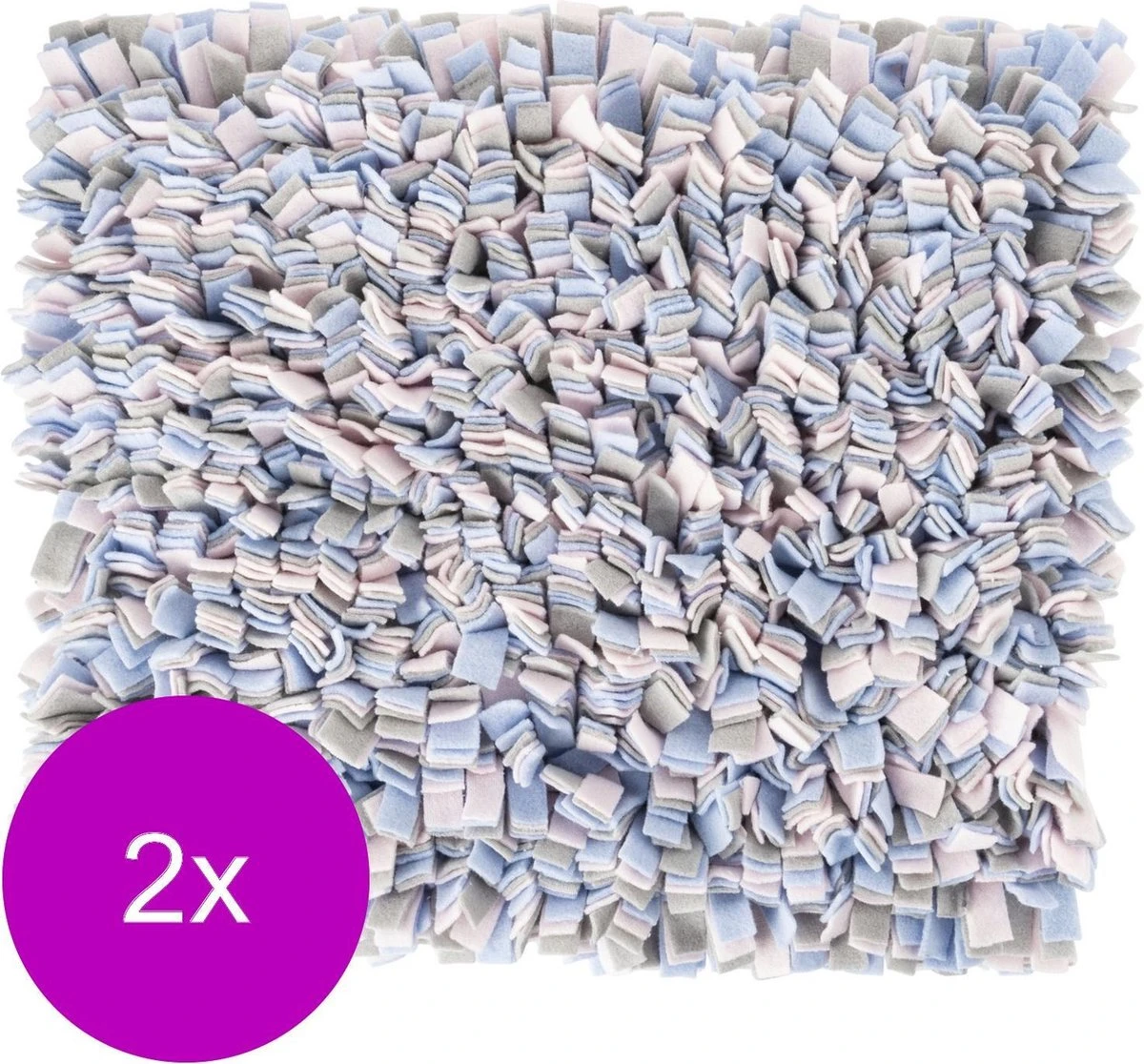 Deze snuffelmat voorkomt verveling bij kat of hondje en moedigt je huisdier aan om te experimenteren en te leren. Verstop brokjes of de favoriete snack van je dier tussen de fleecerepen. Vervolgens moet je viervoeter moeite doen om het lekkers te vinden, verstopt in de mat. Je kan de snuffelmat gebruiken als traktatie, maar ook de normale maaltijd kan erin verstopt worden. Ruim de snuffelmat op wanneer het spel is afgelopen, zo blijft hij spannend voor je dier.