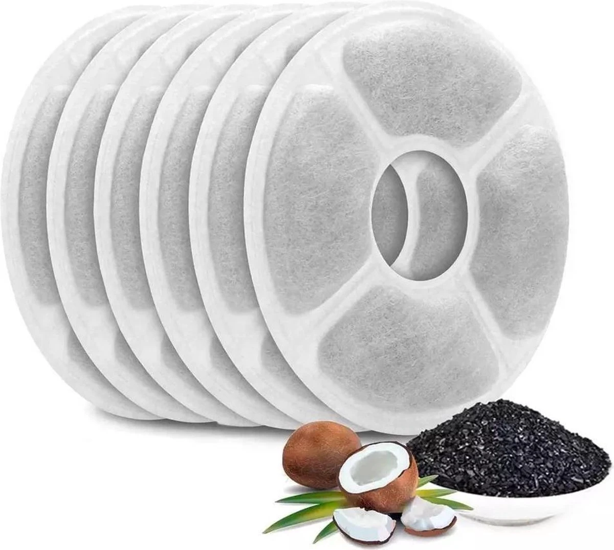 Hond- Kat – Drinkfontein Navulling Filters Set Met Kokos Snippers -6 Stuks
