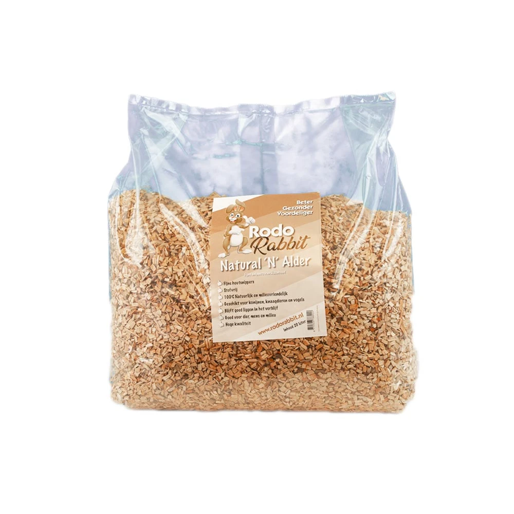 Natural ‘N Alder- Inhoud: 20 LDeze bodembedekking is gemaakt van houtsnippers van de Els. De bedekking bevat geen dennenhout en het is op een natuurlijke manier gedroogd. De houtsnippers hebben een hoog absorptievermogen, zijn stofvrij en mogen na gebruik in de groenbak.