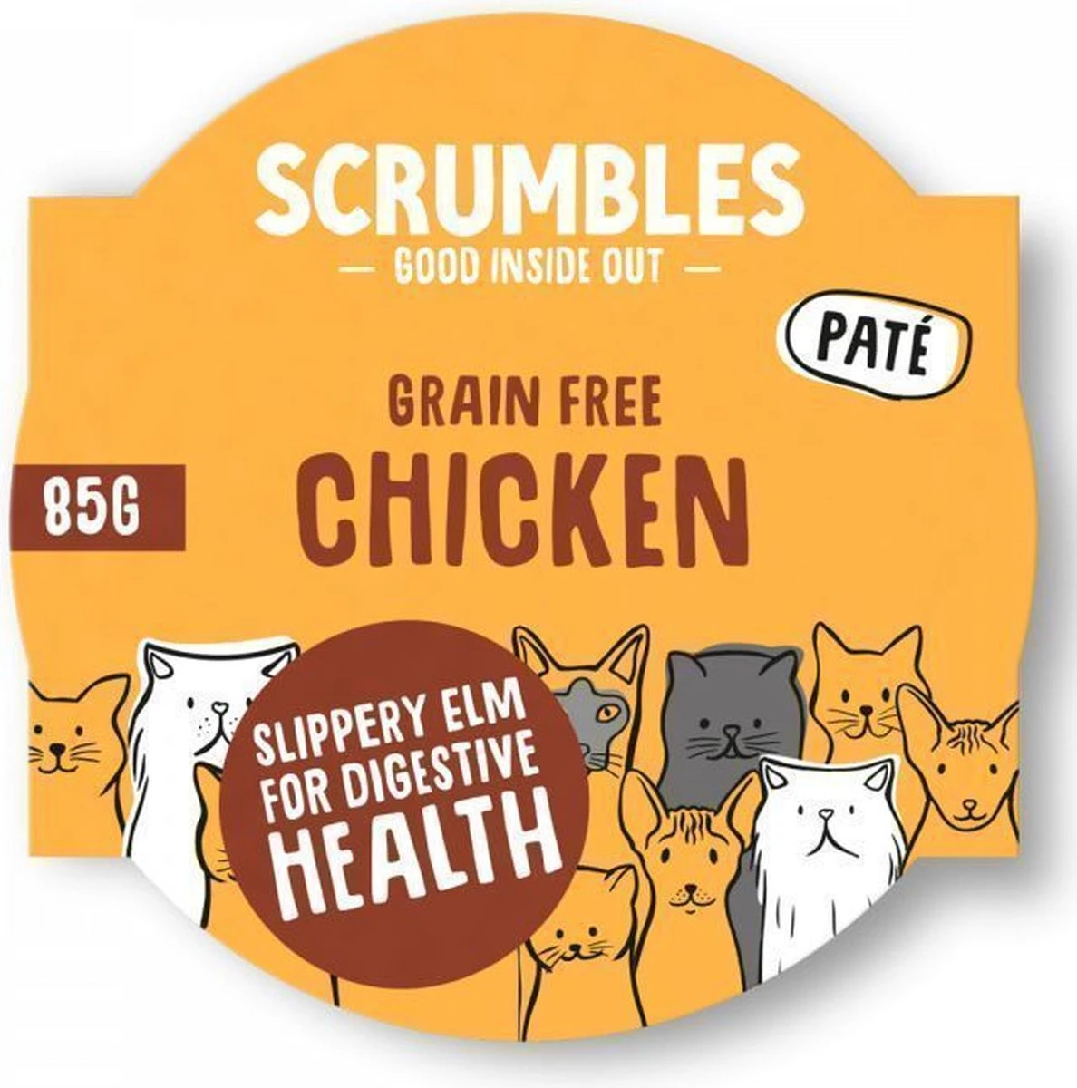 Scrumbles Complete Cat Wet Chicken 8 x 85 gr , Scrumbles Complete Cat Wet Chicken 8 x 85 gr is een compleet natvoer voor de kat, graanvrij en uit natuurlijke ingrediënten, met 70% kip. Het smakelijke natvoer van Scrumbles is voor katten een perfecte afwisseling op het dagelijkse menu. Dit complete kattenvoer bevat alles wat jouw kat nodig heeft in een heerlijke, zachte mousse-structuur. Het voer is rijk aan dierlijke eiwitten en bevat ingrediënten die licht verteerbaar zijn en daardoor vriendelijk voor de maag en darmen. Voor een goede darmwerking, ook voor dieren met een gevoelige spijsvertering! Bovendien is deze maaltijd graanvrij en verder ook vrij van gluten, eieren en melkproducten. Ook bevat het natvoer van Scrumbles geen kunstmatige toevoegingen of toegevoegde suikers of zout. Een zeer goede afwisseling of toevoeging bij het dagelijkse dieet voor jouw kat door het hoge vochtgehalte: katten hebben vaak de neiging te weinig te drinken en blijven op deze manier beter gehydrateerd! – Compleet natvoer voor de kat, – Een heerlijke mousse uit natuurlijke ingrediënten , – Met een hoog gehalte aan dierlijke eiwitten, – Voor een goede darmwerking, – Zonder kunstmatige toevoegingen, – Graanvrij, , Samenstelling: 50% kip, 20% kippenlever, mineralen, zalmolie 0,1%, zonnebloemolie 0,1%, gladde iep 0,05%, vocht, 120 Kcal/100g, , Analytische bestanddelen: , Eiwit9%, Vetgehalte9%, Ruwe vezels0,5%, Anorganische stof2.5%, Vocht75%, Calcium 1,6%, Fosfaat1,5%, Omega 32,4%, Omega 6 8,52%, , Toevoegingen:, , Vitaminen: Vitamine A 1.000 IE, Taurine 265 mg, Vitamine E 20 mg, IJzer (IJzersulfaat-monohydraat) 10,6 mg, Zink (Zinksulfaat-monohydraat) 10 mg, Mangaan (Mangaansulfaat, Monohydraat) 5,3 mg, Koper (Coopersulfaat, Pentahydraat) 1 mg, Jodium (calciumjodaat, watervrij) 0,53 mg, Inhoud: 8 x 85 gr
