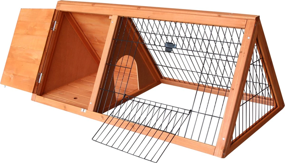 Het nachthok van de ren heeft een afmeting van 42 x 38 cm, wat voldoende ruimte biedt voor uw konijnen om te rusten en te slapen. Het nachthok heeft ook een bodem, wat zorgt voor extra hygiëne en gemak bij het schoonmaken. De opening aan de binnenzijde van het nachthok heeft een afmeting van 16 x 17 cm, wat groot genoeg is voor uw konijnen om gemakkelijk in en uit te lopen. Dit zorgt voor een comfortabele en veilige slaapplek voor uw konijnen.
