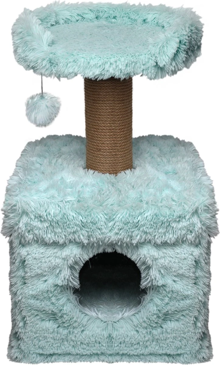 Topmast Krabpaal Fluffy Lima – Lichtblauw – 39 X 39 X 72 Cm – Made In EU – Krabpaal Voor Katten – Met Kattenhuis – Sterk Sisal Touw