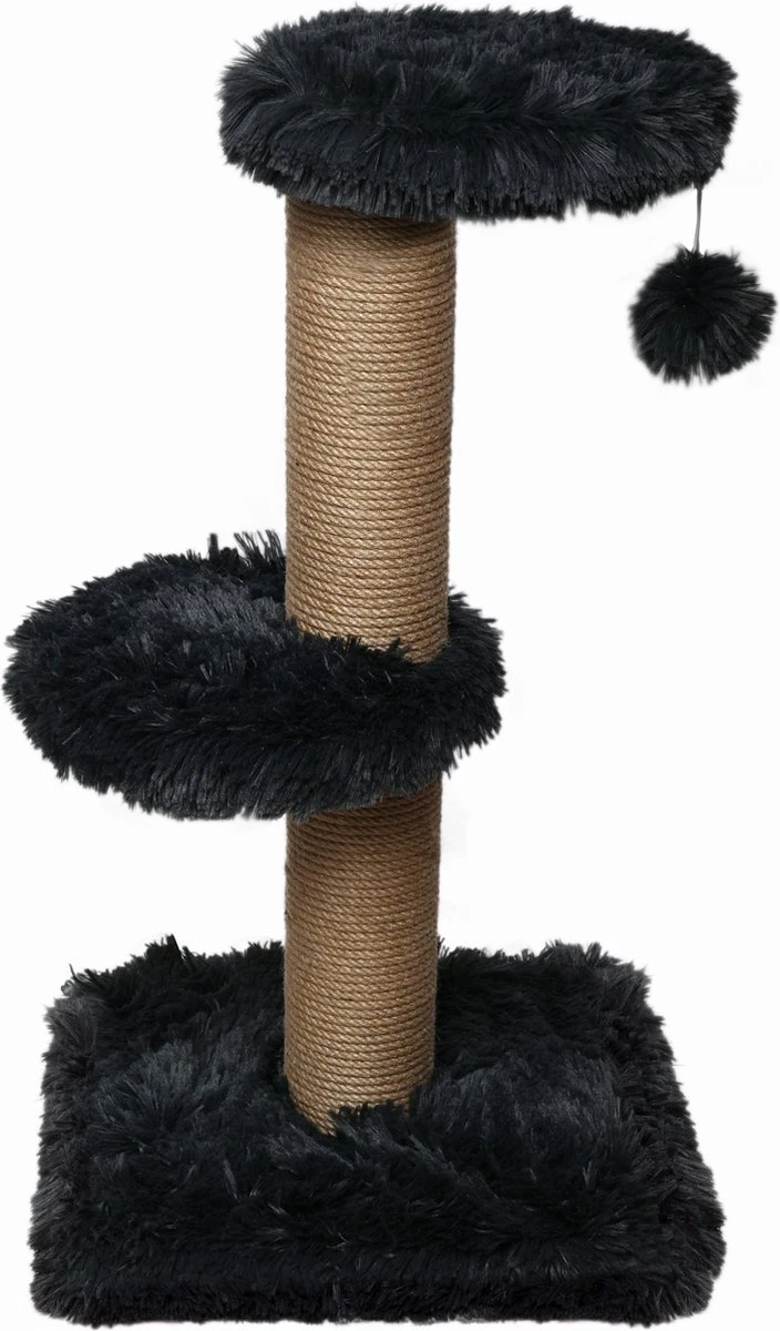 Topmast Krabpaal Fluffy Merida – Zwart – 34 X 34 X 67 Cm – Made In EU – Krabpaal Voor Katten – Sterk Sisal Touw – Met Kattenballetje